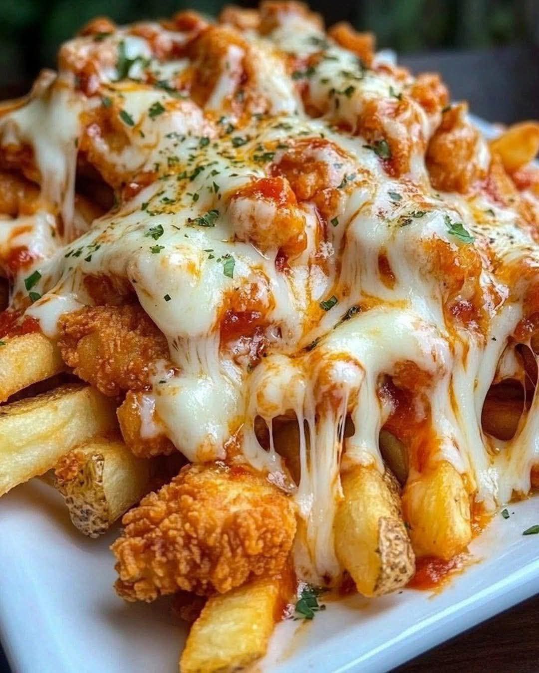 đŸŸđŸ”„ Frites de poulet frit garnies au fromage đŸ§€đŸ—đŸ’„ đŸ€€đŸŒ¶ïž 📌 IngrĂ©dients : Pour les frites : 1 sachet de frites surgelĂ©es (ou frites Russet coupĂ©es Ă  la main) Sel au goĂ»t 1 cuillĂšre Ă  cafĂ© de paprika (pour plus de piquant) Pour les bouchĂ©es de poulet frit : 450 g de blanc ou de cuisses de poulet, … Lire plus